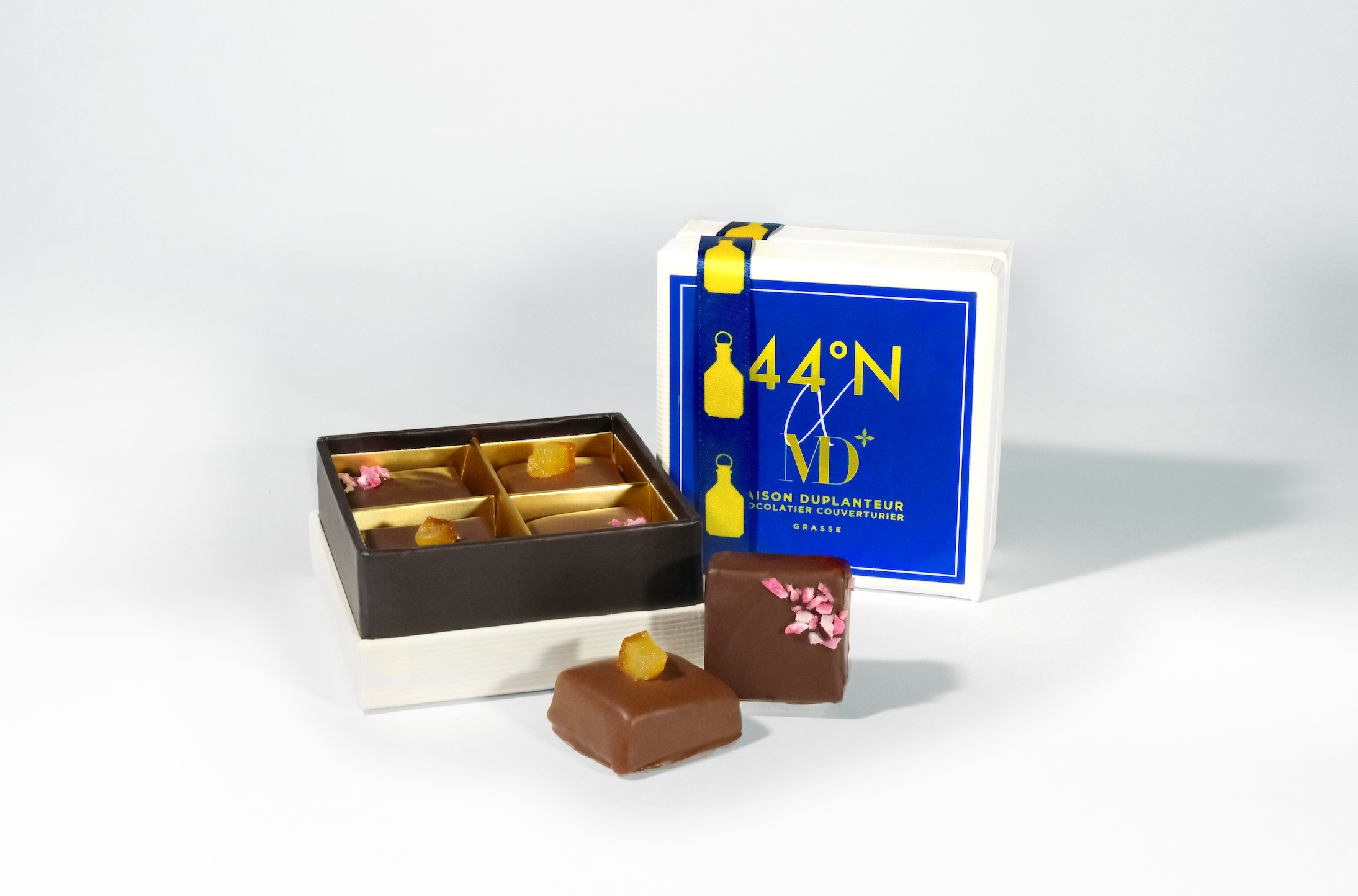 We are pleased to announce that every Bottle of 44°N Gin ordered this month will receive a complimentary and exclusive box of chocolates curated by Maison Duplanteur.
