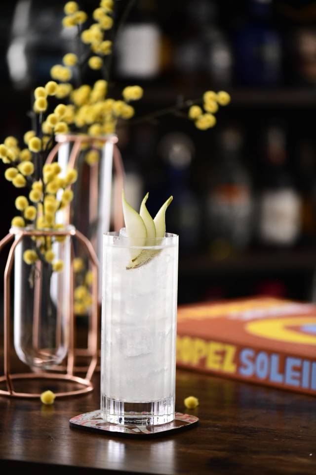 1/ Measure out the 44°N, Poire Williams and Pear Syrup and pour into your shaker 2/ Juice your lemon with a Mexican elbow (any juicer will work just as well), measure and add to your shaker 3/ Add ice to fill the shaker and vigorously until the shaker is ice cold to the touch 4/ Fill a Collins Glass to the top with ice 5/ Strain into the glass & top up with 50 ml of soda water 5/ Garnish with a thin pear slice skewered with a Maraschino Cherry. Santé!